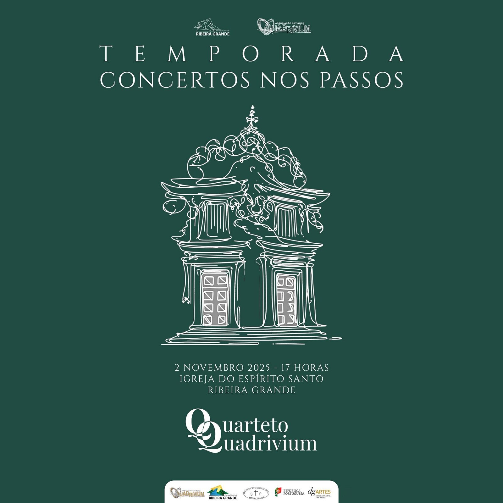 A Igreja do Espírito Santo (também conhecida pela Igreja do Senhor dos Passos) acolhe no próximo dia 2 de novembro, pelas 17H, o derradeiro concerto de 2025 da Temporada "Concertos nos Passos" pelo Quarteto Quadrivium.