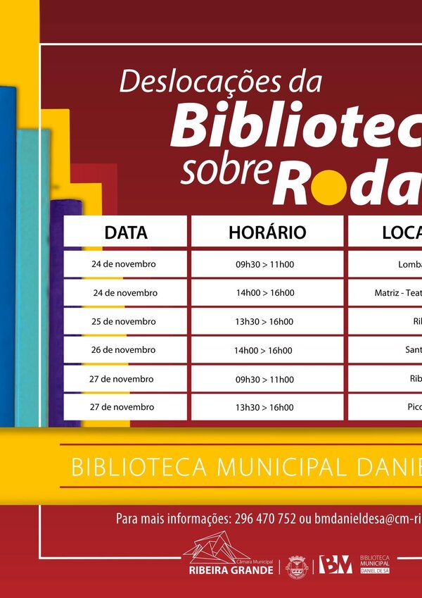 Consulte o cronograma desta semana e fique a conhecer as freguesias que a Biblioteca sobre Rodas irá visitar. Para mais ...Homepage | Agenda -